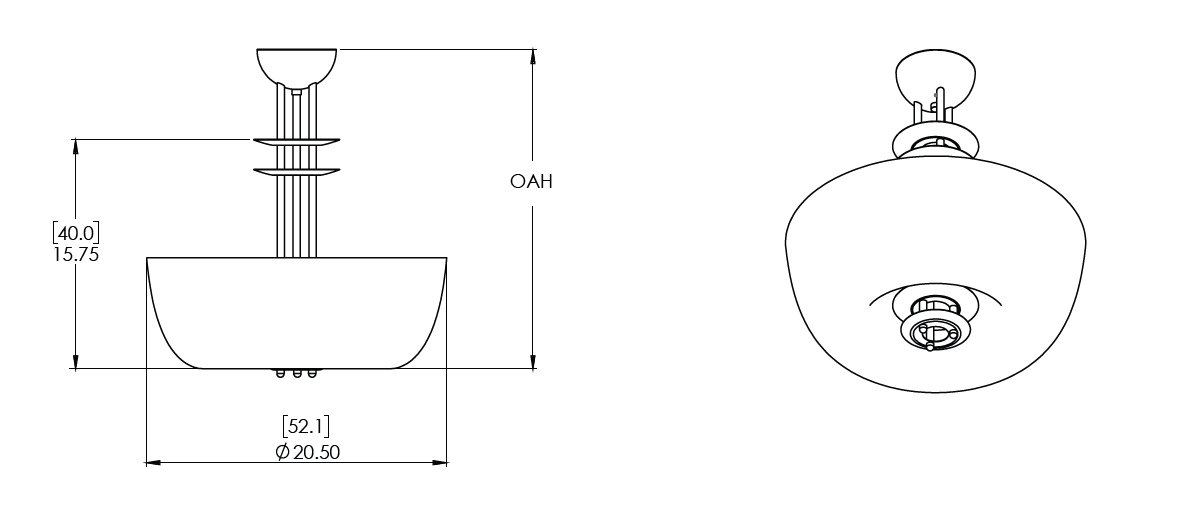 Overall Height (OAH) measures the distance from the ceiling to the lowest point of a fixture.