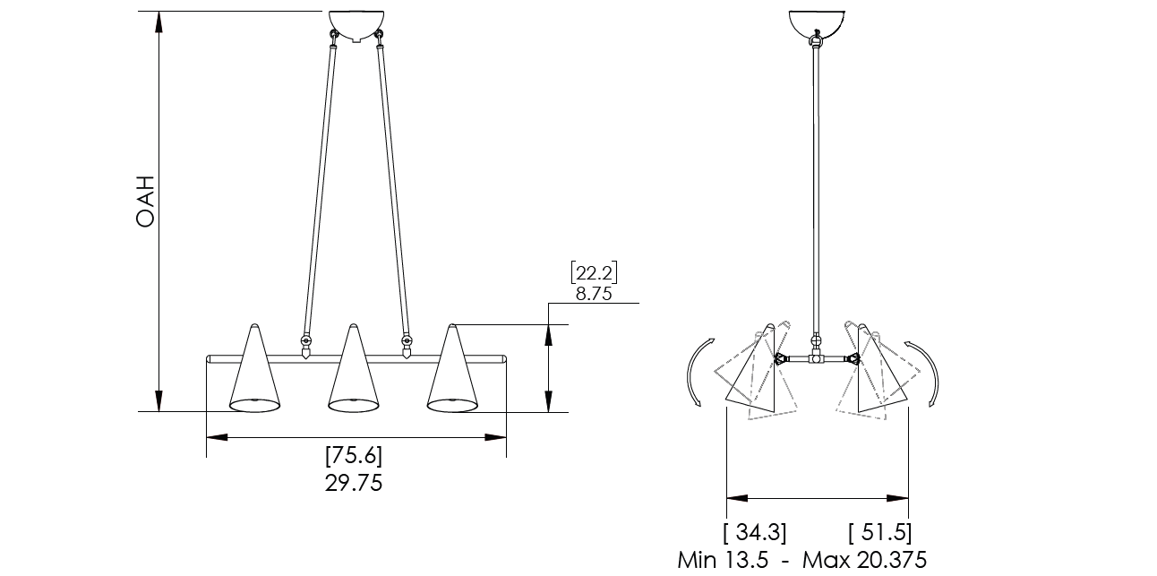 W 13.5 in - 20.375 in / 34.3 cm - 51.5 cm