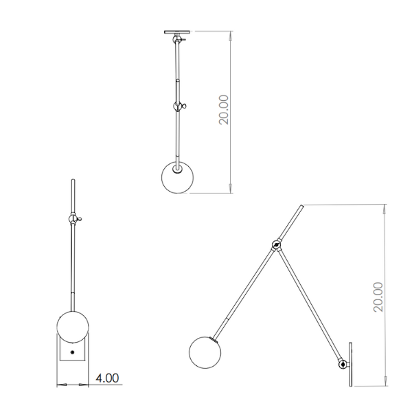 The Auguri wall lamp features two adjustable articulating joints, lending soft light to any room. Its design is influenced by both French and Italian Mid-Century Modernism. Arm length(s) can be made shorter or longer upon request.