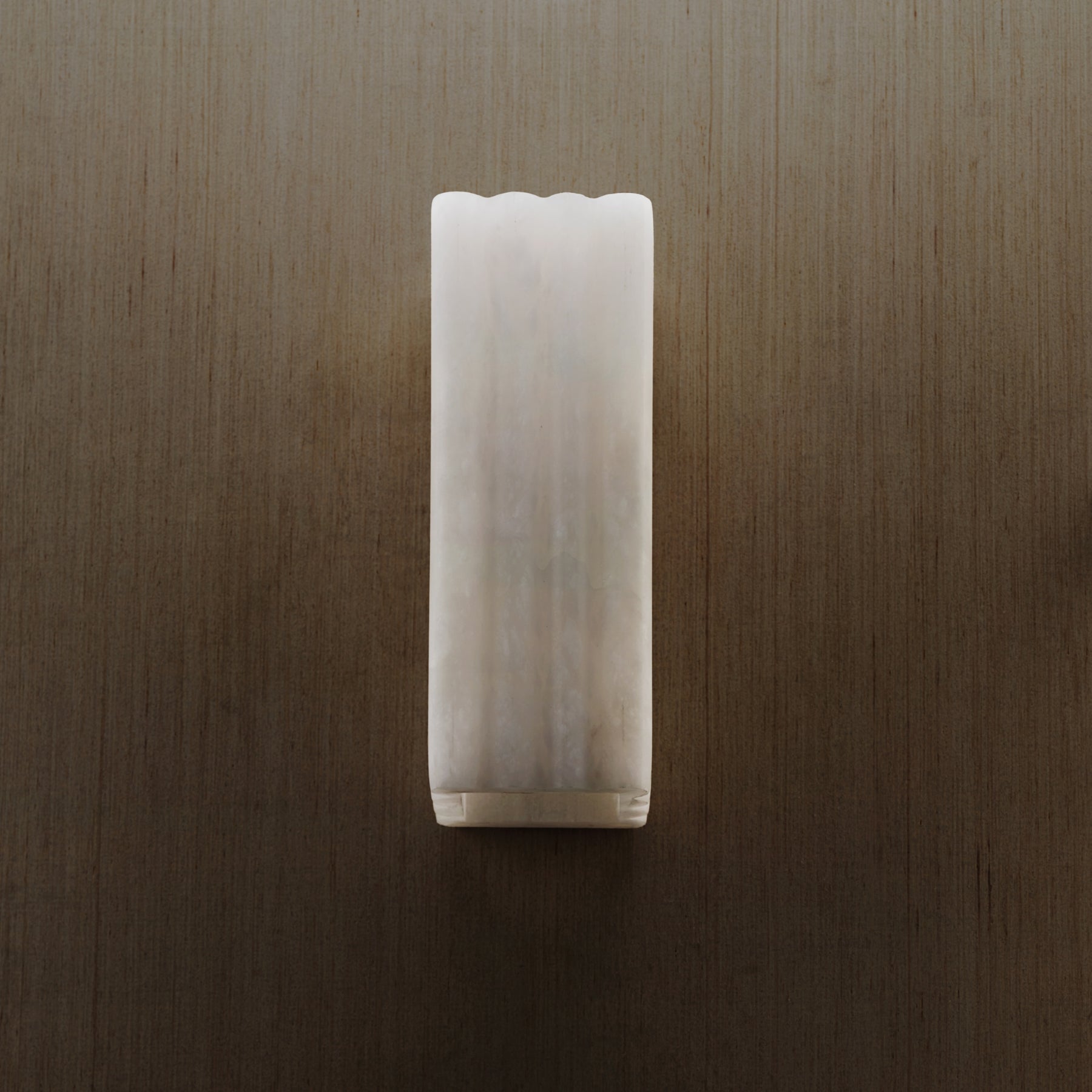 The Ellis Sconce is a sculptural wall fixture crafted from hand-carved, honed alabaster, designed to celebrate light as much as form. Its softly contoured surface and subtle dimensional pattern create a luminous depth, allowing the stone to glow with a warm, enveloping radiance. Refined and intimate in presence, Ellis brings a sense of quiet luxury to the wall—well suited for bedrooms, hallways, and other spaces where ambient light is meant to feel rich, calm, and deeply inviting.