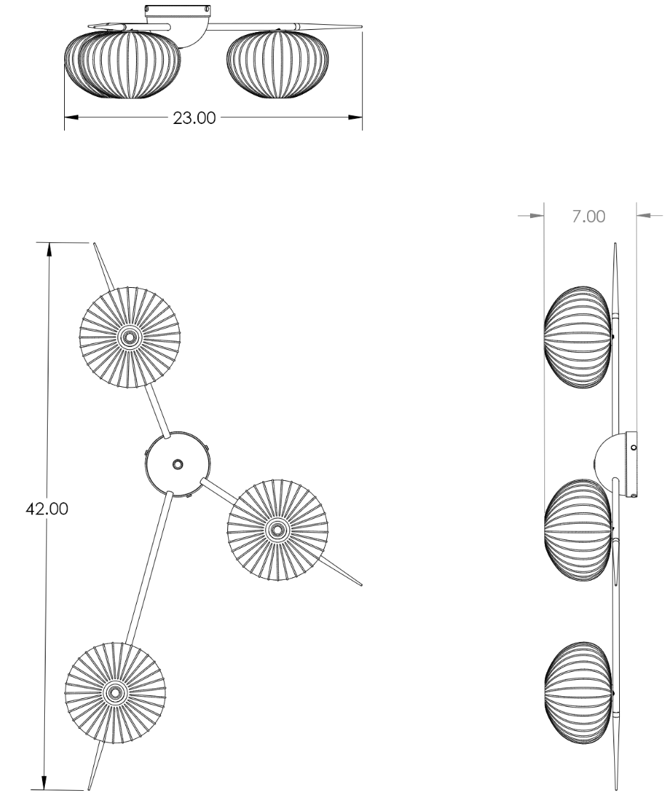 Crafted with a nod to nature's beauty, the Kina 3 Wall Light boasts an asymmetrical design that draws inspiration from an intricate sea urchin. Not for the faint of heart; the Kina 3's large scale and spike finials evoke a sense of organic elegance, offering a dramatic statement piece for modern interiors. This over-scaled fixture can function as a ceiling flushmount or a dramatic wall light—the choice is yours!